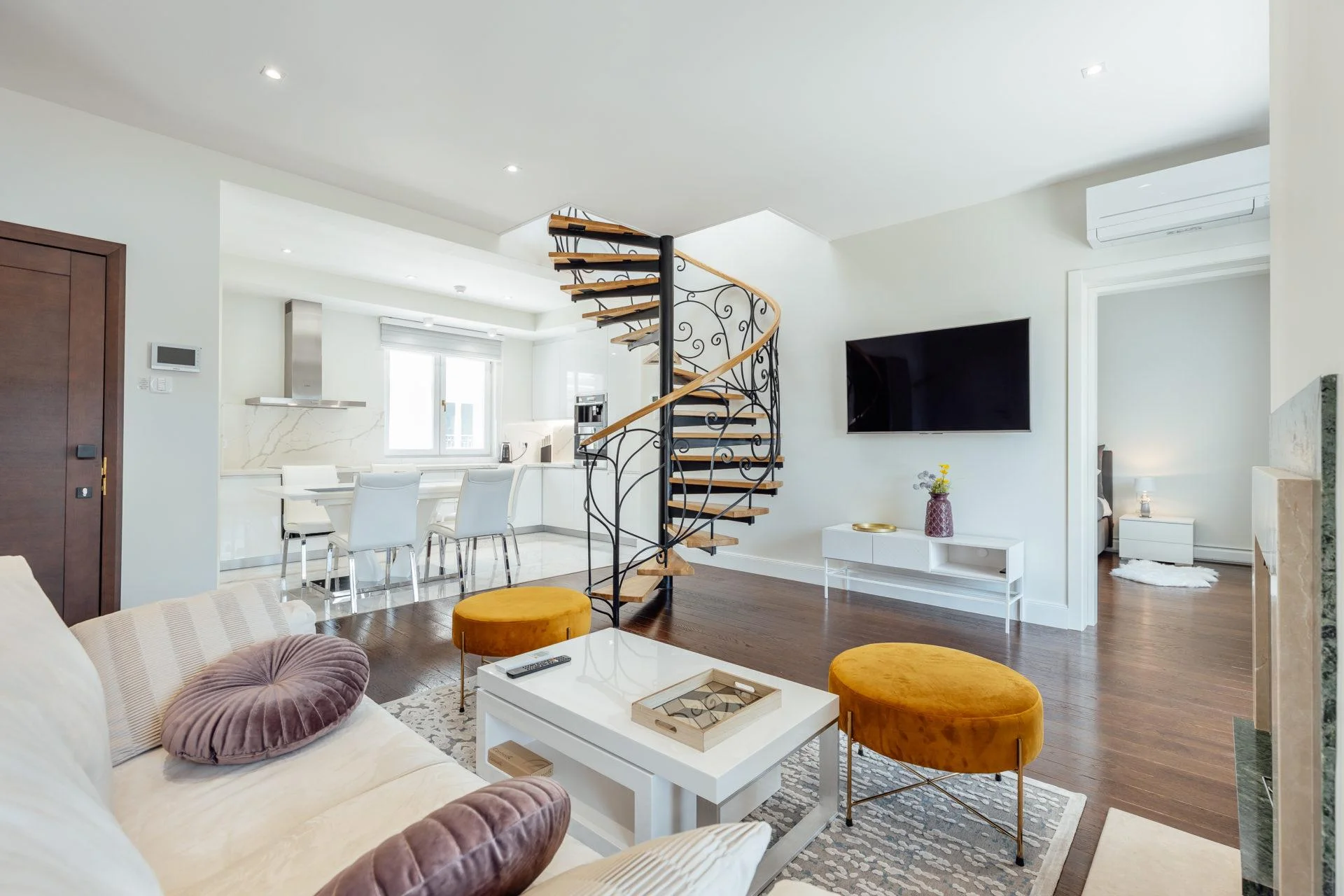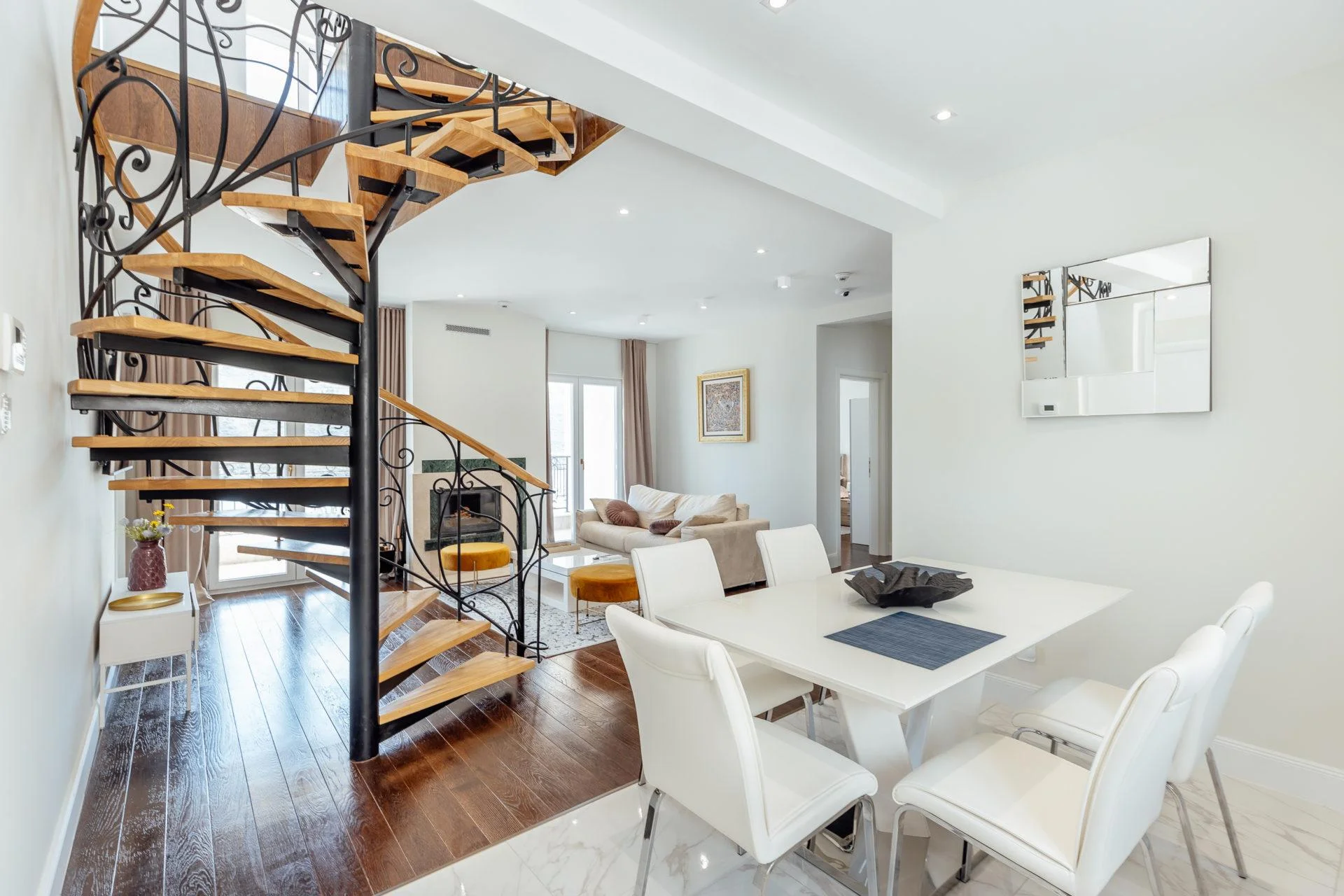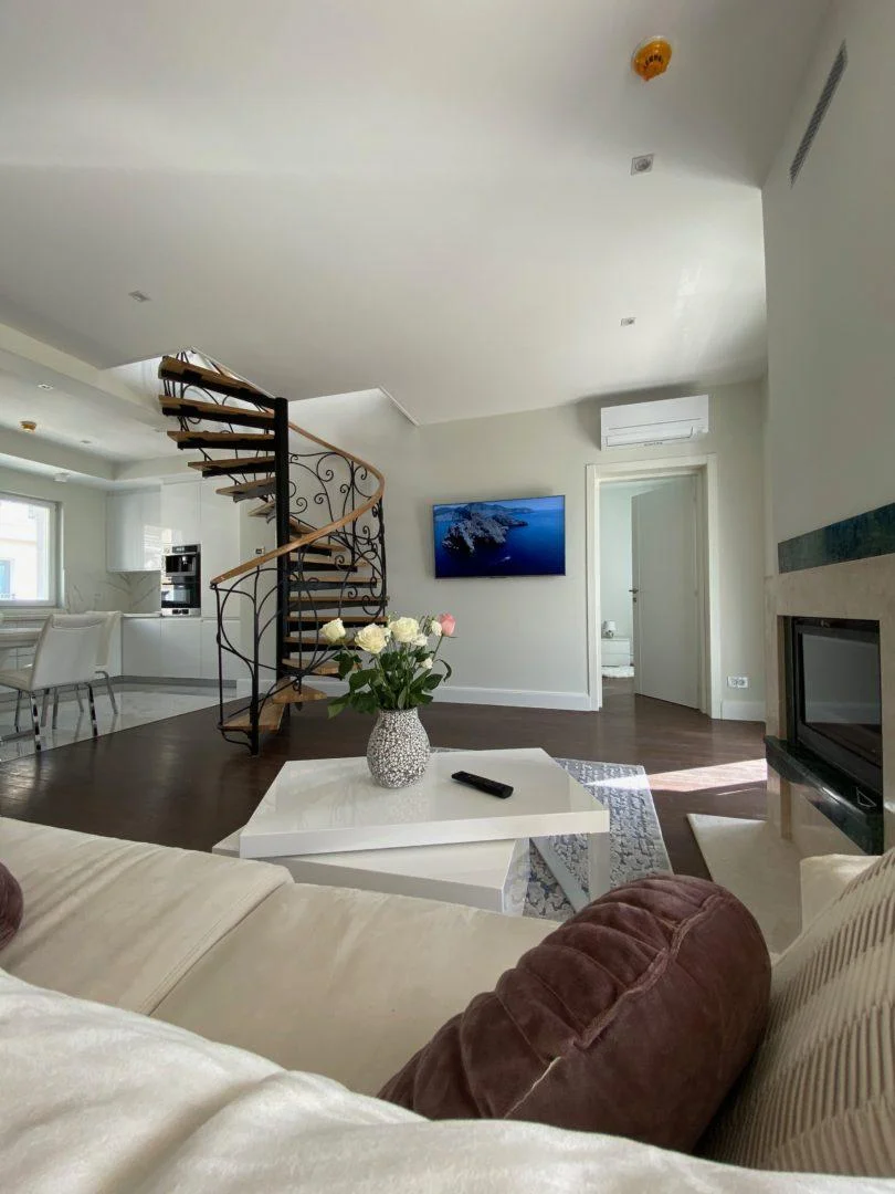 The apartment is equipped with all necessary engineering systems – air conditioning, heating, and underfloor heating. It has been integrated with a modern automation system “Smart Home” from the American manufacturer Control4, with which you can control the blinds, climate, and much more from your mobile phone. For lovers of classic coziness, there is a wood-burning fireplace in the apartment.